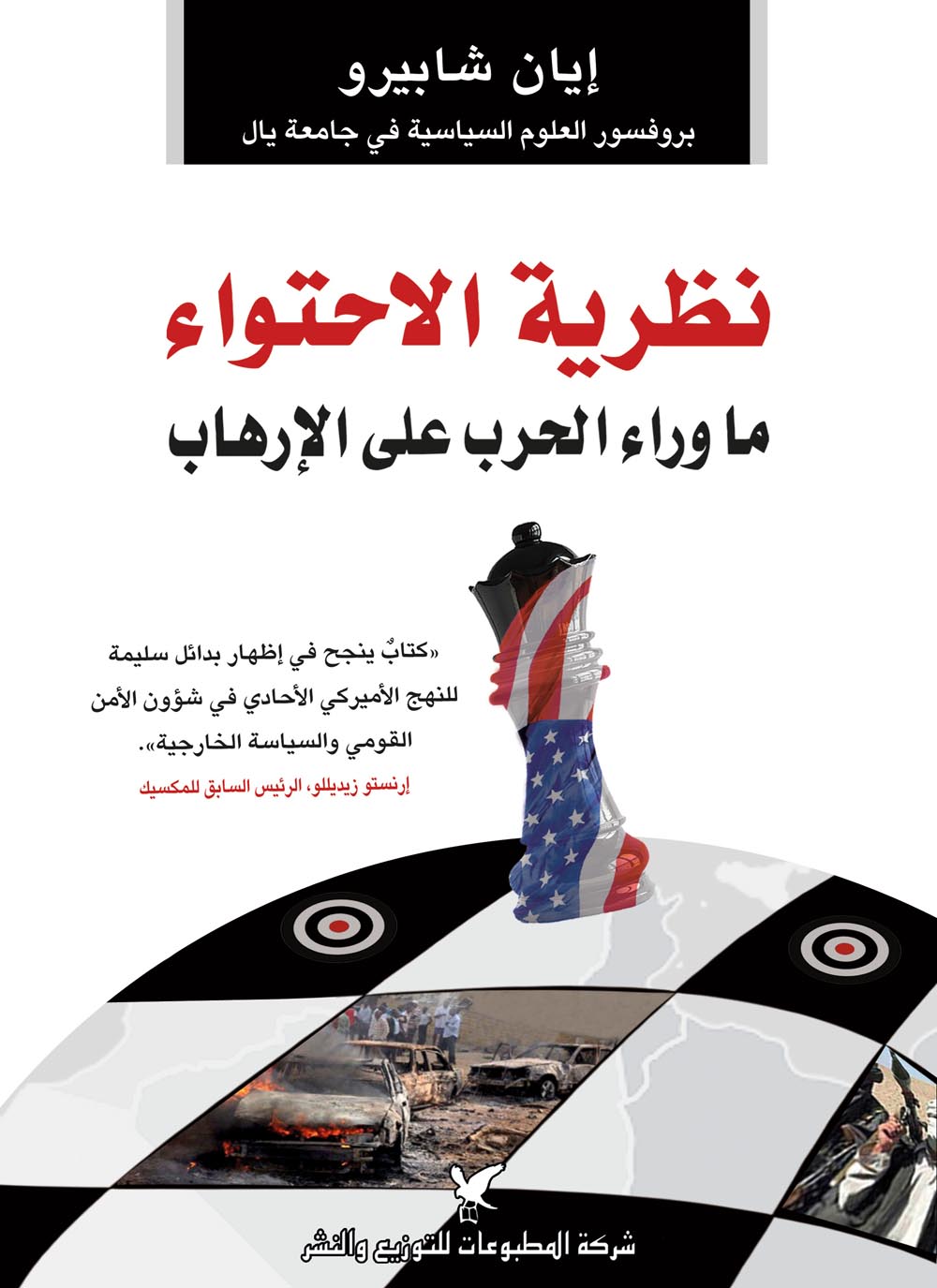 "جورج بوش يعرّف الحرب على الإرهاب على أنها الصراع الإيديولوجي الأخطر في زمننا في نظرية الاحتواء ما وراء الحرب على الإرهاب، يُظهر شابيرو فداحة الخطأ الكامن في قول بوش هذا، بدليل الإخفاقات المتكرّرة التي طبعت عهد بوش ولاسيما في العراق وأفغانستان. يعود شابيرو، وهو بروفسور في العلوم السياسية في جامعة يال، إلى نظرية الاحتواء، مؤكداً أنها السبيل الوحيد لضمان الديموقراطية في الولايات المتحدة. نظريةٌ طلع بها المفكِّر والسياسي الأميركي الشهير جورج كنان، وطبَّقتها بحذافيرها بدايةً حكومة الرئيس هاري ترومان، فنجحت مائة في المائة، ولاسيما خلال الحرب الباردة مع الاتحاد السوفياتي الأسبق، وفي محاولة وقف المدّ الشيوعي وانتشاره في العالم.