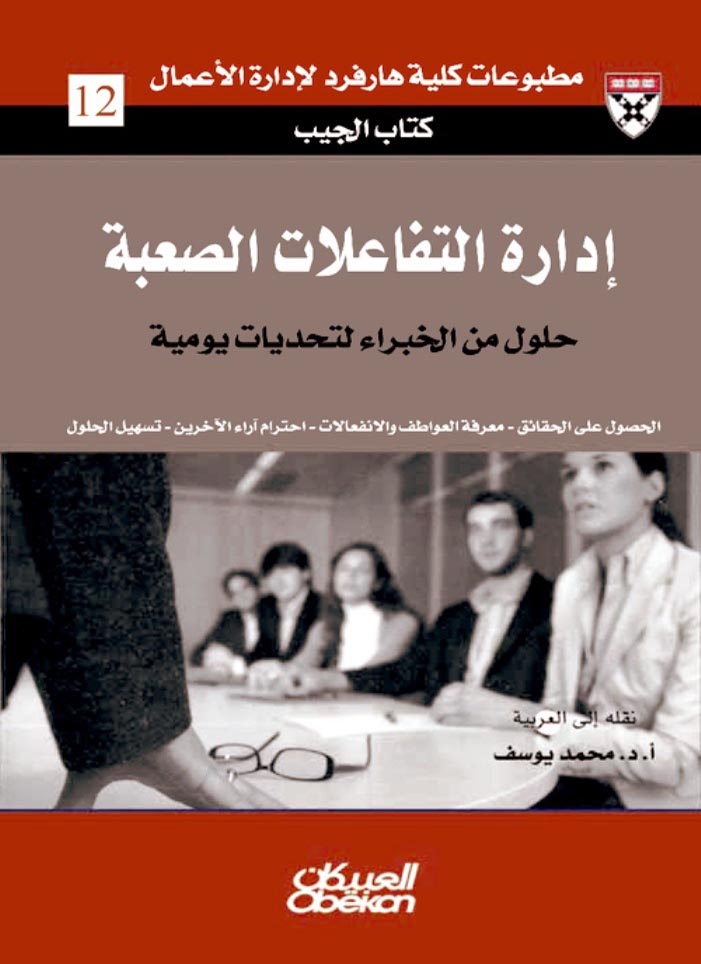 يمكن أن تحدث بعض التفاعلات الصعبة في مكان العمل بين الموظفين بعضهم مع بعض أو بينهم وبين مديريهم أو أندادهم وأحياناً مع العملاء والموردين، تعلم كيف تدير التفاعلات الصعبة وتحلّها من خلال: تحديد المواقف التي تستحق استثمار الوقت والطاقة بصددها تعريف الاختلافات الشخصية والتعامل معها إعادة صياغة المشكلة بطريقة أكثر إيجابية عن سلسلة كتاب الجيب: سلسلة كتاب الجيب توفر حلولاً مباشرة للتحديات المتكررة، التي تواجه المديرين يومياً، كل كتاب من هذه السلسلة مليء بوسائل عملية، أو «عدة» للعمل، سبق اختبارها، في ميدان عملي، وأمثلة واقعية، لمساعدتك على تحديد نقاط قوتك وضعفك الإدارية، ولتشحذ المهارات النقدية والإبداعية لدى المديرين إن هذه السلسلة تعالج احتياجاتك الإدارية اليومية، بسرعة أكبر وبسلامة أكثر فاعلية، سواء كنت على كرسي عملك أو في لقاء، أو في الطريق.